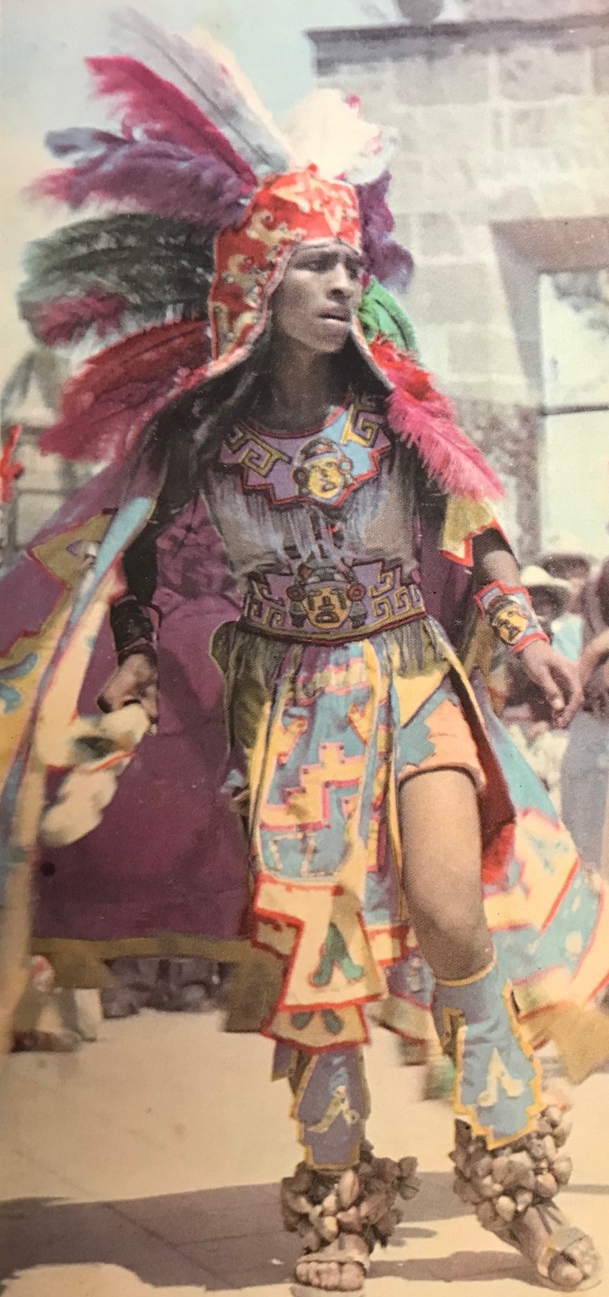 Once I flipped through the first few pages on the book, I was gratified to see that my memory was correct except for one important detail. He was, according the caption, an Aztec dancer, not an Aztec chieftain as I had been thinking all these years. I have attached a camera shot of that photograph as the Featured Image at the beginning of this post.