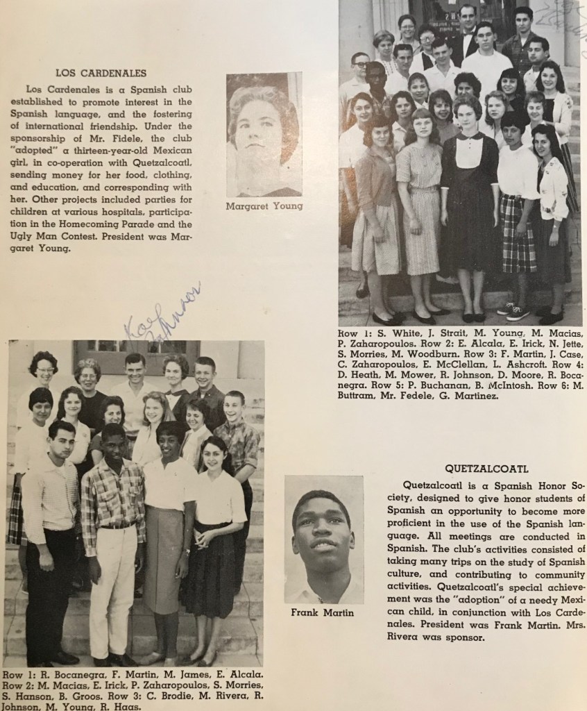 1961 school picture of the GM Spanish club (Los Cardenales) and the Spanish Honor Society (Quetzalcoatl), San Bernardino High School, San Bernardino, CA